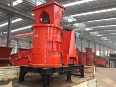 工作原理:块状矿石由进料斗落入破碎机腔内上甩料盘上,借助甩料盘的离心力将物料抛向筒体的内壁,与安装在内壁上的反击板猛烈碰撞,同时物料互相撞击,使之破碎或产生大量发丝裂纹,接着物料进入锥形转子腔后,在锥