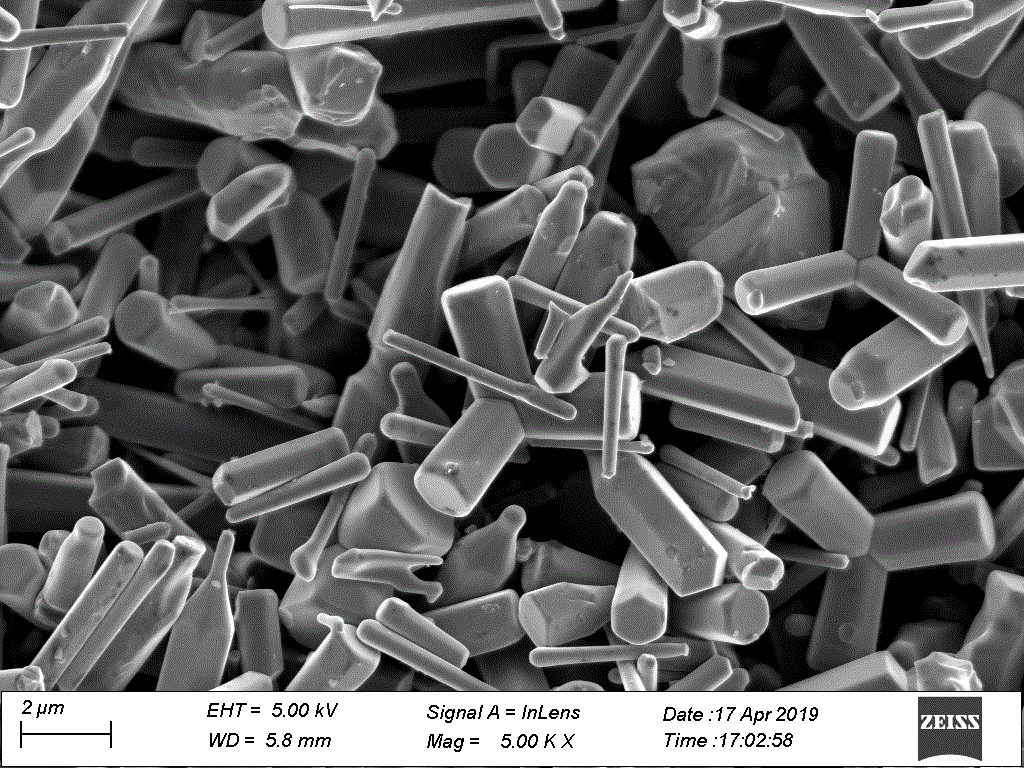 ZnO为纳米棒形态,纳米棒结合形成四角晶须状;直径100-300nm,长度1~3µm;比表面积1.07m2/g;纯度99.9%;六方结构。(以先丰纳米实测参数为准)应用方向:光电,压电,传感,能源,吸