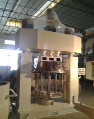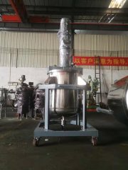 强力分散机:本机器由底座、釜盖及传动系统、釜体、液压升降系统、电气控制系统组成。1、底座:焊接结构;2、釜体:为不锈钢制作,底部有橡胶脚轮及出料口,外壁有定位夹紧扣;3、釜盖及传动系统:釜盖、密封装置