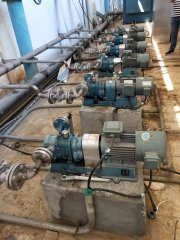 含油污水提升泵,转子泵的特性高效节能:体积小,流量大,扬程压力高,适用长距离与高阻力定量输送。泵的叶轮与传动齿轮分开,且在泵腔内各零配件之间保证一定的间隙,相互不接触,无磨损,低噪音高粘度物料输送泵: