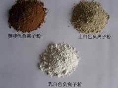 负离子粉,采用多种硅酸盐矿物混合加工而成。技术指标:1、粉体颜色:咖啡色、土白色、乳白色粉末2、耐热温度:1750度、、、3、化学稳定性:不溶于水,耐弱酸、弱碱。4、PH值:7.15、密度:4.2-5