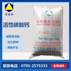 活性重质碳酸钙,该产品选用己生产好的重质碳酸钙为原料,采用粉体表面改性活化生产线,对其进行表面处理包覆而成。产品疏水、亲油、分散性流动性极好,与树脂有极好的相容性,是适用于聚合物产品的填充。