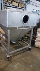移动料斗,是散料处理系统的一部分,用于储存、输送粉粒体和其他物料。下料:在移动料斗底部,使用锥形阀,可以和下料站配合用以控制下料并做到粉尘无外泄。填充:在移动料斗的口部,使用手动或自动操作的填充装置,