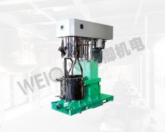 产品简介行星搅拌机通常包含两个搅拌桨叶和两个高速分散一个刮壁桨叶,双搅拌浆和安装于高速分散轴上的多个锯齿状分散盘既作自转,又作公转;同时结合搅拌浆的低间隙设计,无死角,低速搅拌桨强烈的捏合干涉运动和和