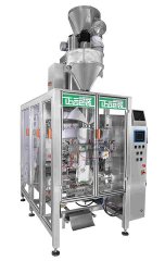 7300型立式全自动粉料包装机组是由一台立式制袋充填包装机、一台自动称量机选配自动上料机组成,该机器集自动上料、自动称量、自动制袋、自动充填、自动封口、自动打印日期、自动计数和防伪防窜货于一体。并可升