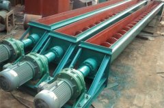 双轴螺旋输送机原理是在两条无缝钢管内分别装有一根实体螺旋,其中一根是左旋,另一根是右旋。工作时两根螺旋通过在轴伸位置的一对齿轮啮合转动,由于螺旋体的转动,使物料作轴向移动,从而达到输送目的。双轴螺旋输