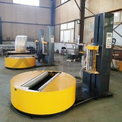 YP系列圆筒缠绕机分为托轮圆筒缠绕机和圆筒回转缠绕机两类设备操作简单免维护。圆筒式缠绕包装机是指通过转台旋转带动圆筒状货物转动的同时转台上的两根动力托辊带动圆筒状货物自转适用于各种圆筒状货物的密封包装