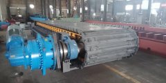 混凝土布料机头部清扫装置制作方法现有的履带式混凝土布料机在运输潮湿的混凝土产品时,混凝土容易在皮带上大量粘结。粘接后的皮带会使得输送困难,影响使用。粘结后如采用人工清理,清理困难。因此我公司设计了混凝
