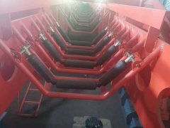 混凝土布料机皮带槽形托辊装置介绍图中:托辊1、托辊2、托辊3、辊轴4、托辊轴5、托辊轴6、通孔7、固定轴8、压紧螺丝9、连接套10。一)混凝土布料机皮带槽形托辊项目说明:混凝土布料机的皮带槽形托辊装置