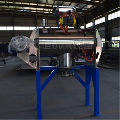 卧式螺带混合机粉体物料采用气动大开门结构形式,具有卸料快、无残余等优点;高细度物料或半流体物料采用采用手动蝶阀或者气动蝶阀。可配置加热或冷却夹套。加热方式有电加热和导热油加热两种方式。冷却工艺可直接向