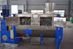 混合机设备介绍:无重力混合机由卧式筒体、传动机构、双轴搅拌桨叶组成,并可选配专用的破碎棒;工作时,双轴相对反向旋转带动不同角度的桨叶将物料沿轴向、径向循环翻动,在高线速度的作用下物料被抛起处于失重(即